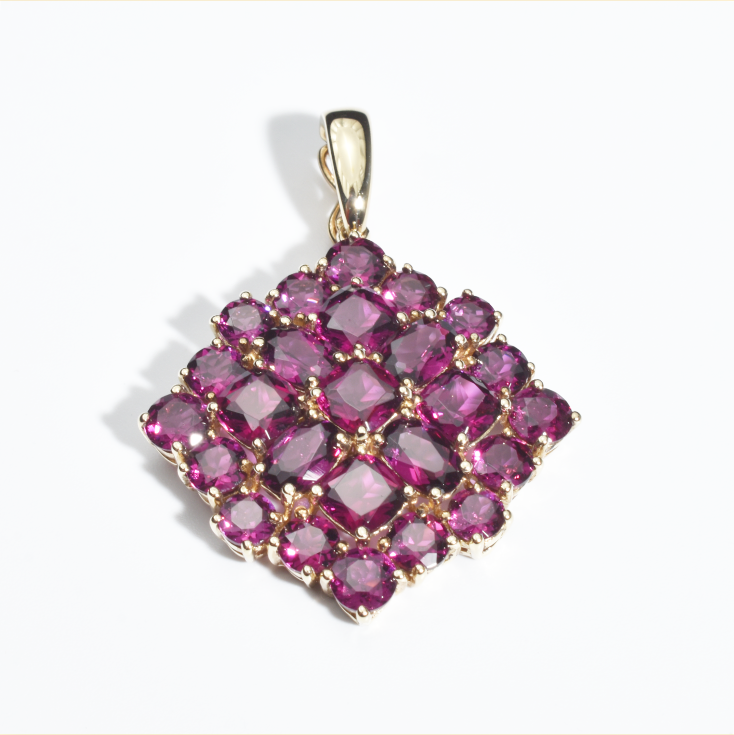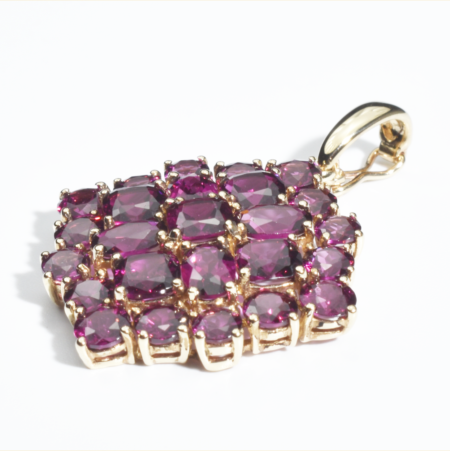 Abmessungen: 39,8 mm x 29,2 mm | Ösendurchmesser: 3,8 mm | 25 Rhodolith-Granate