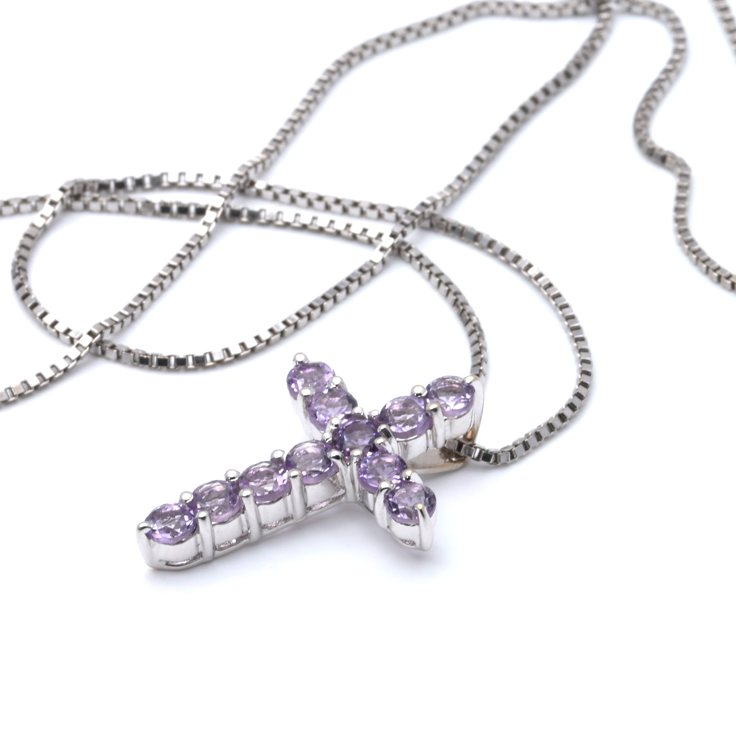 Kette mit Kreuzanhänger | 750/000 Weißgold | Amethyst