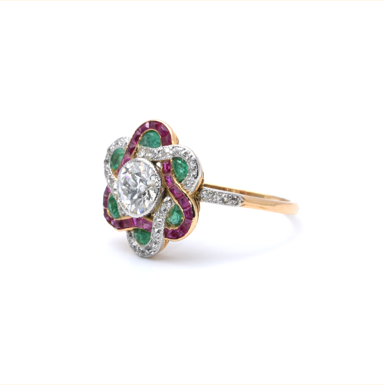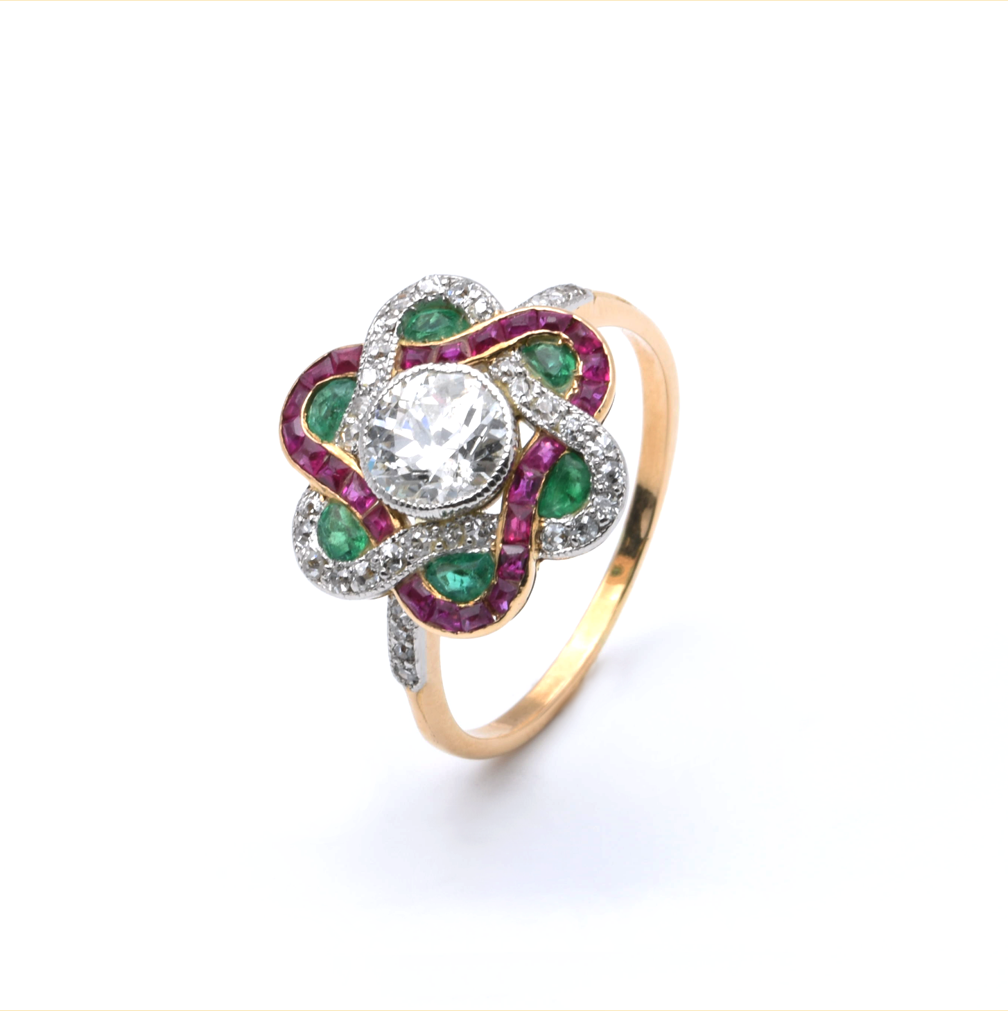 Ring | 750/000 Gold | Bicolor | Diamanten | Brillant | Rubin | Smaragd